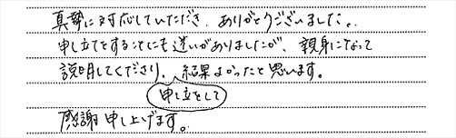 親身に対応していただきありがとうございました。
